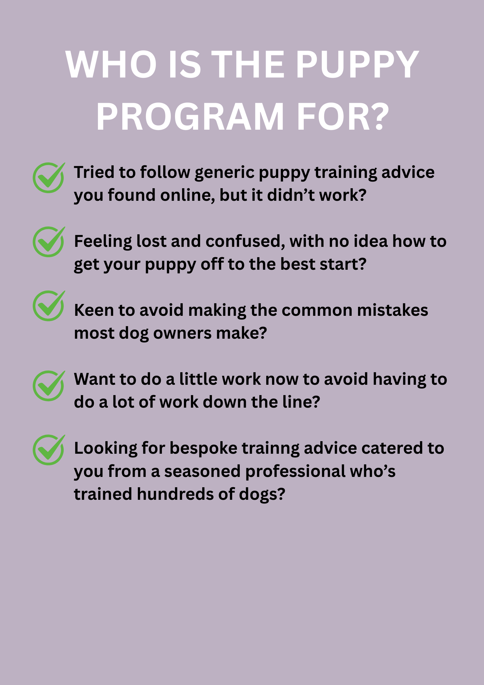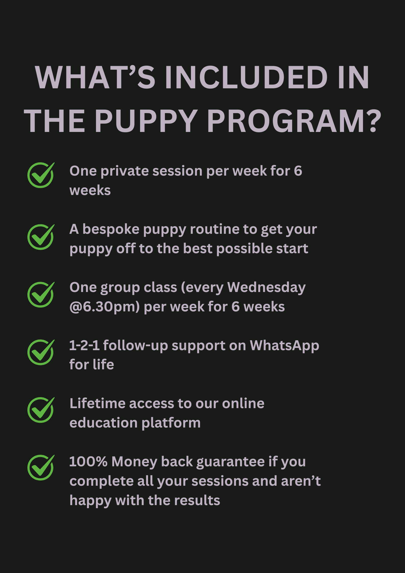 Our Puppy Program is specifically designed to make puppy life as easy as possible while also building positive habits in your pup that will last a lifetime.